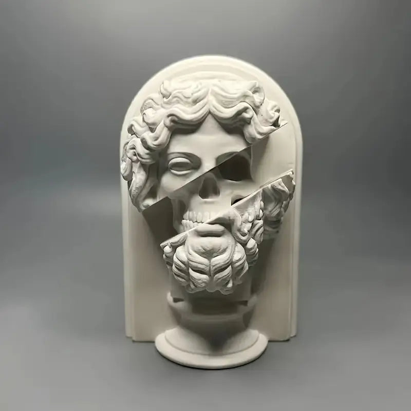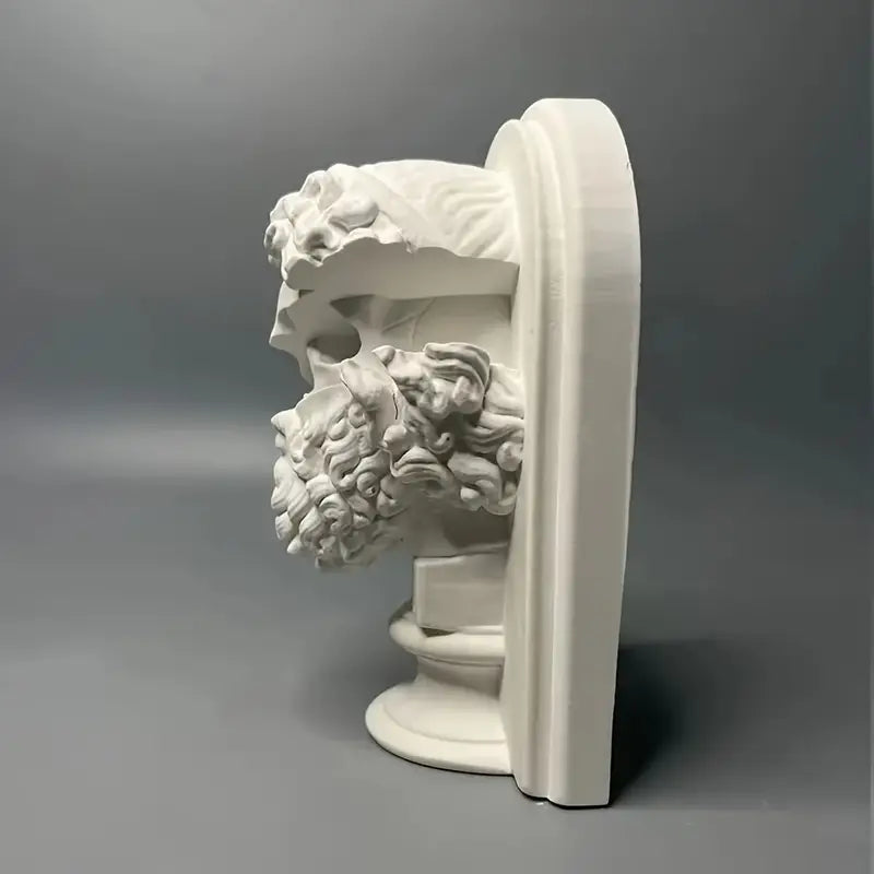 On a storm-tossed night, Captain Pika’s crew dove into the ruins of that sunken palace, guided only by moonlight and whispers of treasure. There, amidst shattered pillars and the bones of history, they found this strange bust — its face split open to reveal the skull beneath, as if the sea itself had peeled away the mask of power.