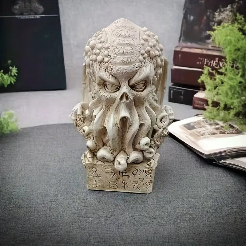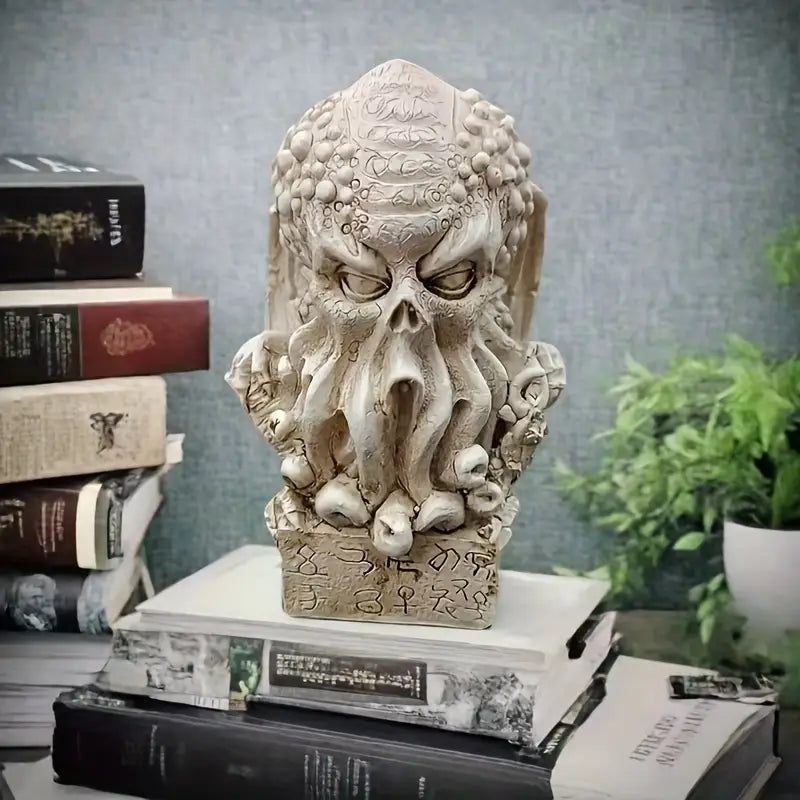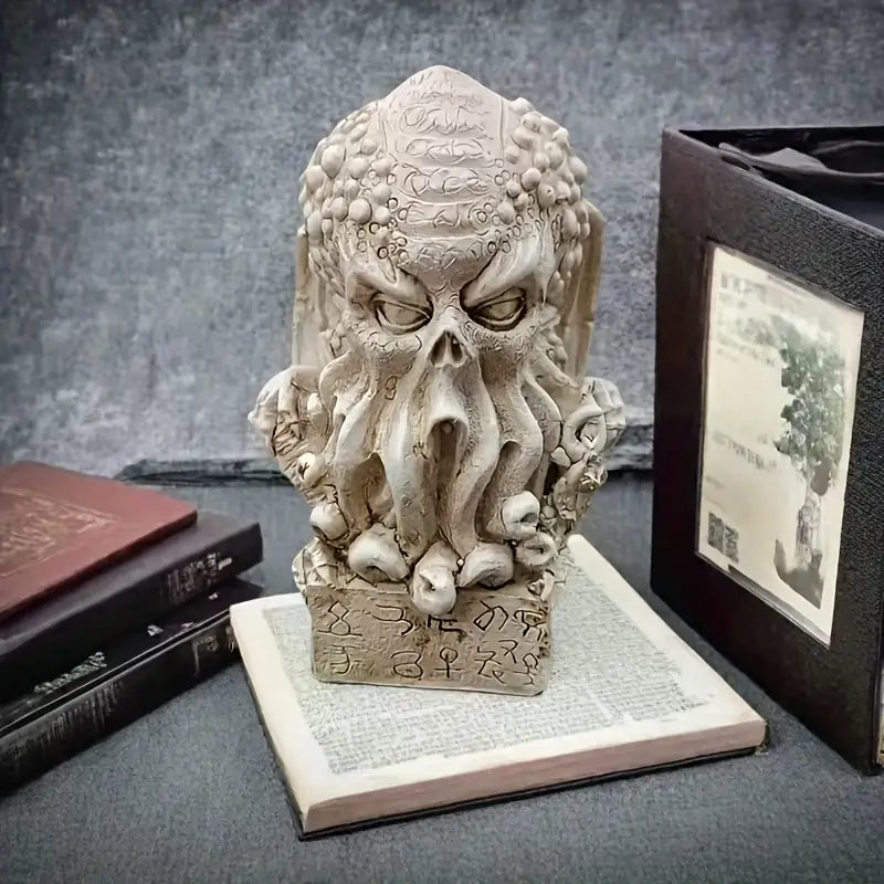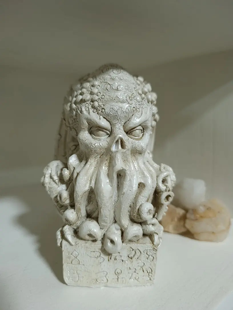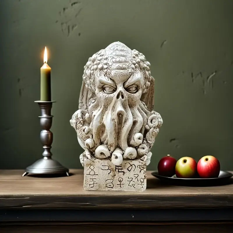 Inside, Captain Pika found this statue — the very image of Cthulhu himself, frozen in mid-roar, stone tentacles forever writhing. Local lore tells a darker tale: that the gods of the deep, fearing Cthulhu’s growing hunger, bound him with a curse, turning his body to stone to keep the seas safe. But his spirit? That, they say, still stirs in the abyss… and sometimes, through this statue, it watches.