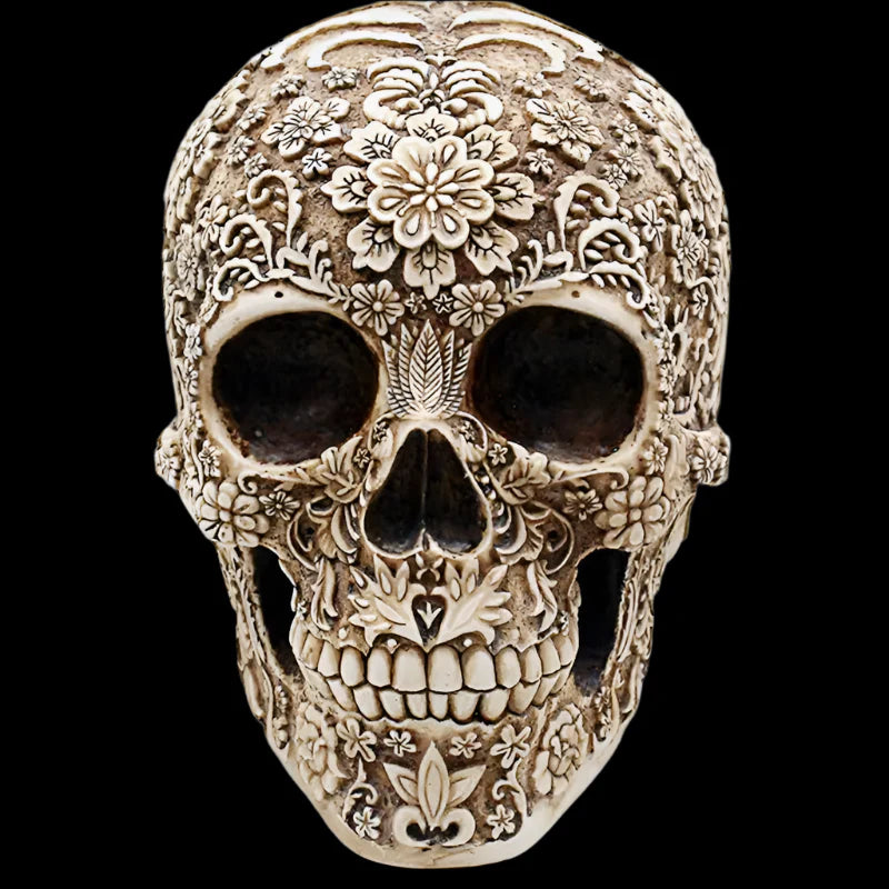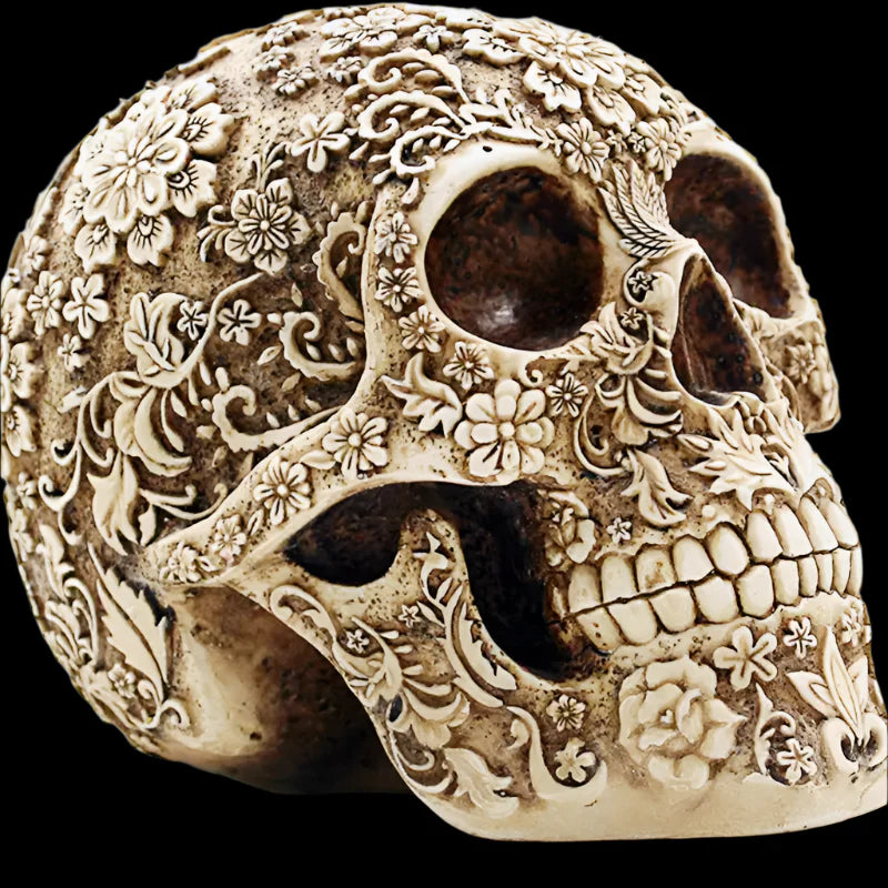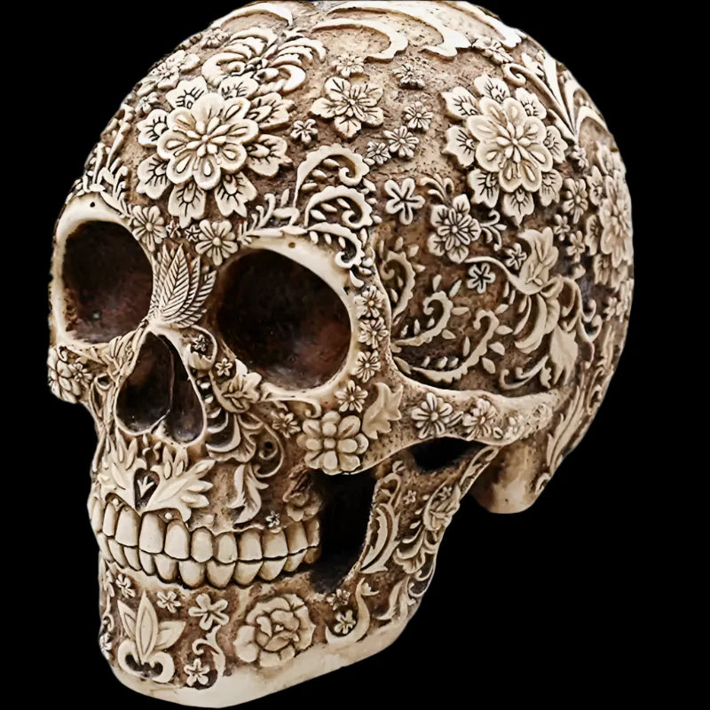 This skull, adorned with intricate carvings of flowers and vines, belonged to the last pirate queen of Rose Island. It is said she wove magic into the very patterns, ensuring that her spirit would bloom eternally in bone and blossom alike. Captain Pika claimed it after outwitting her ghost in a game of riddles, and ever since, the Floral Skull has been a symbol of beauty masking danger.